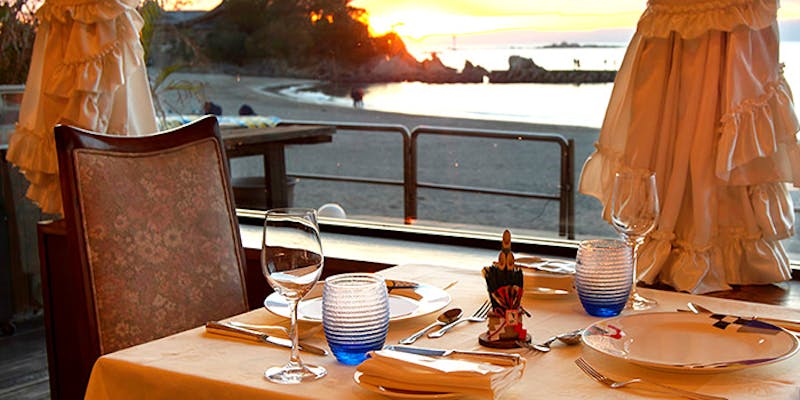 海辺のレストラン ラ・プラージュは、葉山の森戸海岸にあります。夏には海水浴で賑わう砂浜に面し、大きなまどから相模湾、江の島、そして遠くには富士山が望めます。
