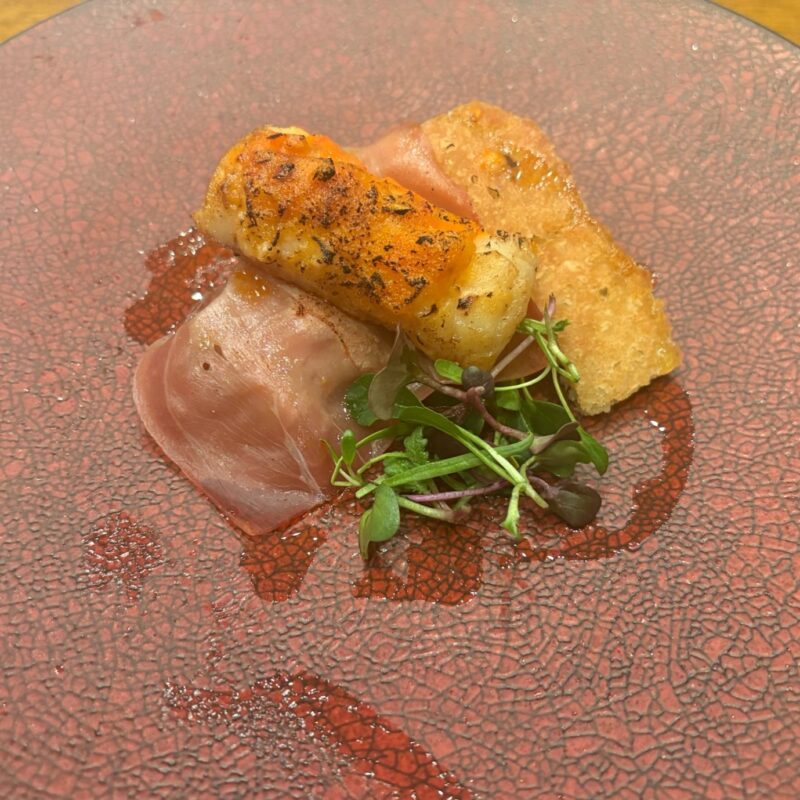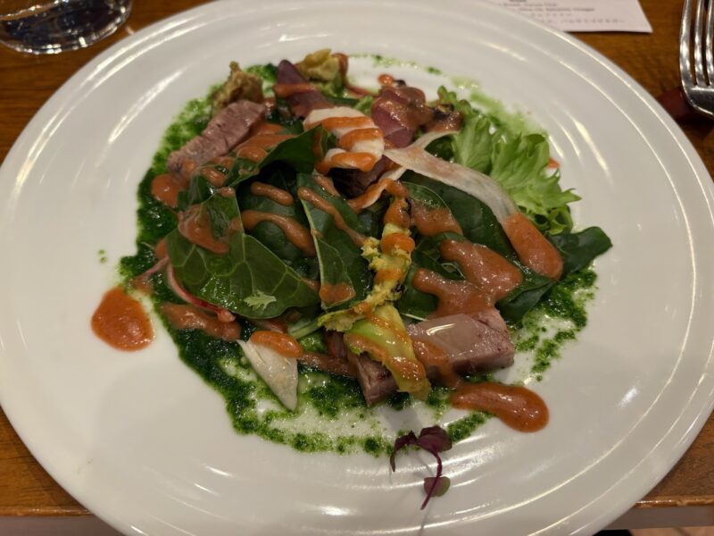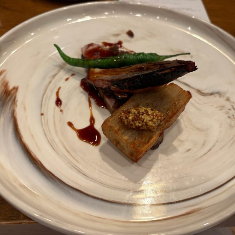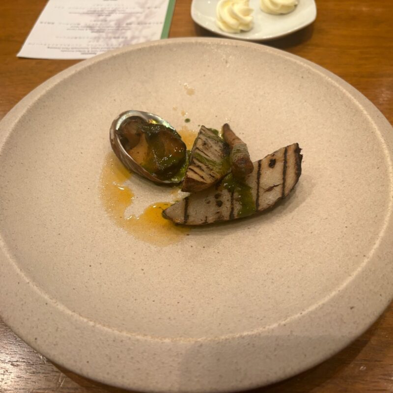 夕食はWOODSIDE diningで。薪火で調理された料理は香ばしく、どれも手が込んでいて美味。