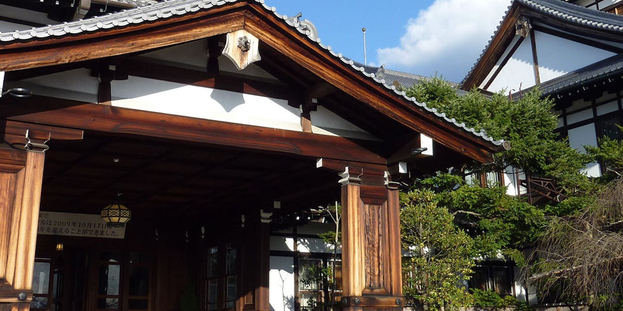 この建物が本館です。辰野金吾氏設計により、1909年に建造されました。 桃山御殿風檜造りです。
